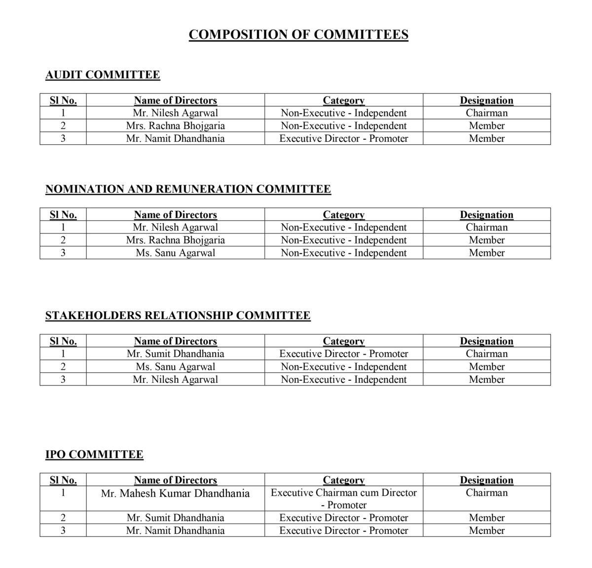 Composition of Committees